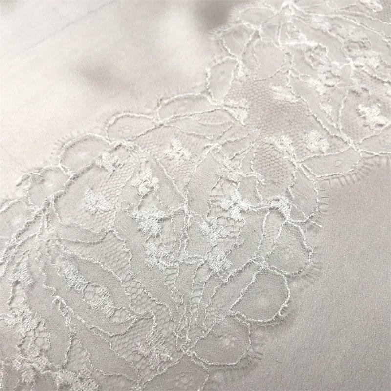 Fine French Lace Double Scallop Border. Width 8cm. 41% Polyamide/59% Viscose.