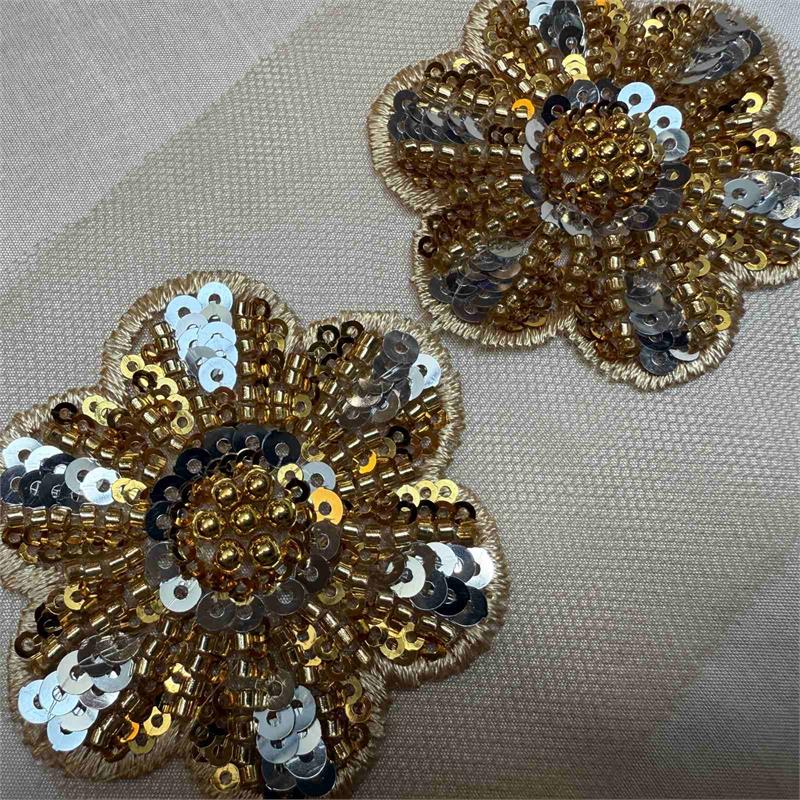 Sequinned Flower Motif Trim. Width 54mm. Polyurethane/Polyester.