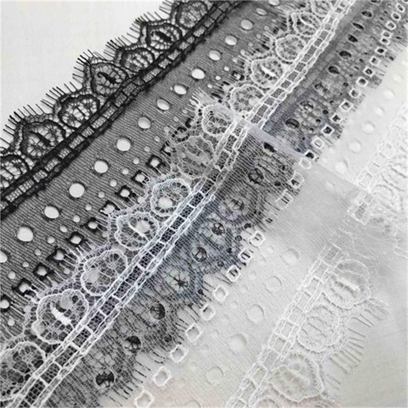 Fine French Eyelet Lace Trim. Width 95mm. 71% Nylon/29% Cotton. Can be machine washed at 40 degrees. This lace is discontinued and available only while stock lasts. Black only left in stock.