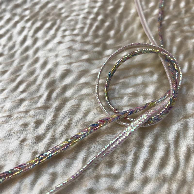Iridescent Braid. Width 3mm. 50% Cotton/20% Metallized Polyester/25% Polyamide. Suitable to machine wash at 30 degrees.