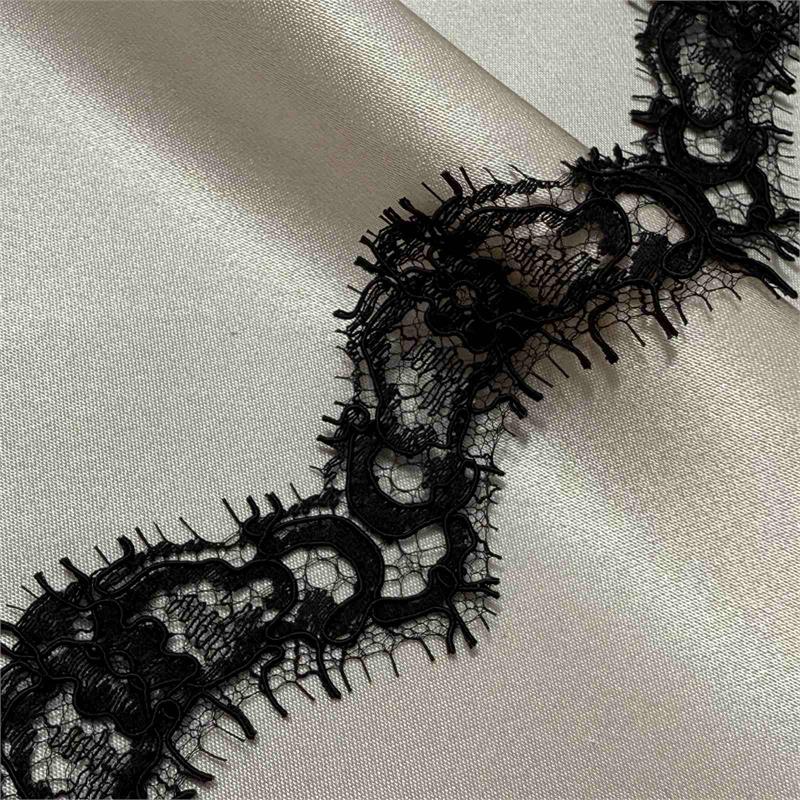 Fine French Corded Leavers Lace Scallop. Width 40mm. 62% Cotton/22% Viscose/16% Polyamide. Black only.