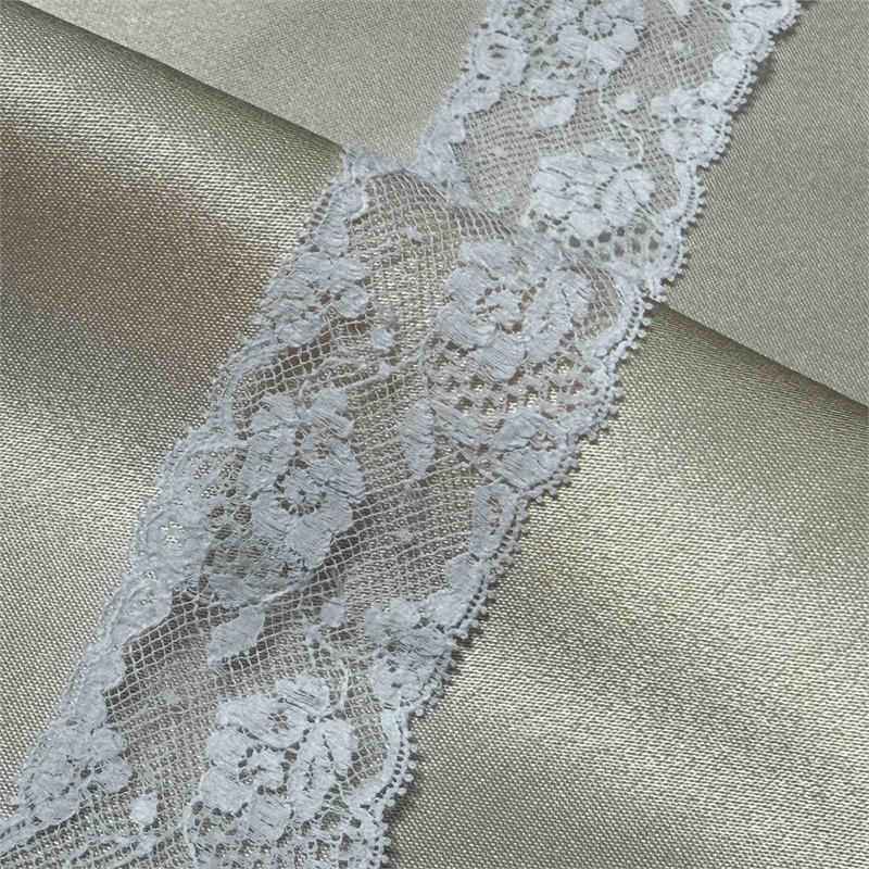 Fine French Cotton Leavers Lace Trim. Width 32mm. 90% Cotton/10% Polyamide. White only.