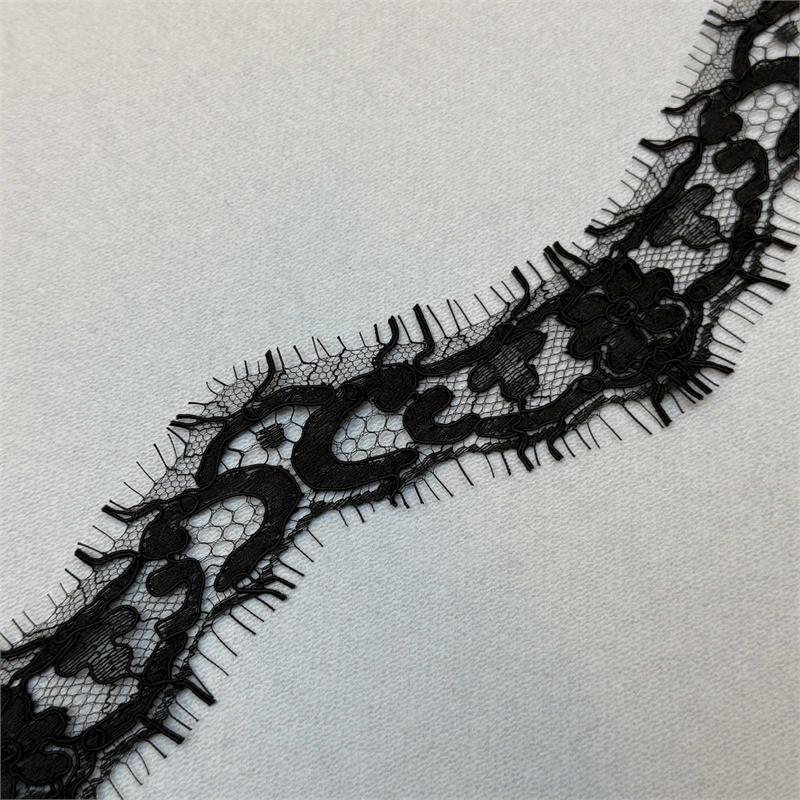 Fine French Corded Leavers Lace Scallop 63% Cotton/22% Viscose/15% Polyamide. Width 50mm. Black only.