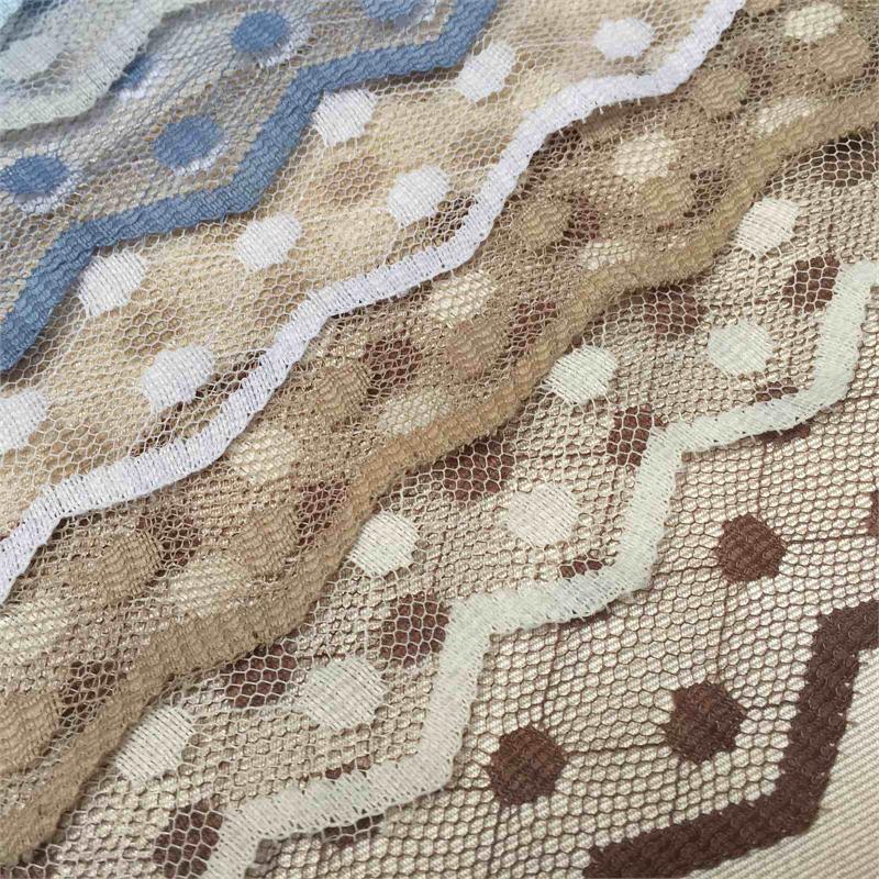 Spot Lace Trim. Width 70mm. 100% Polyester. Machine wash at 40 degrees. This product is disconitnued and available only while stocks last.