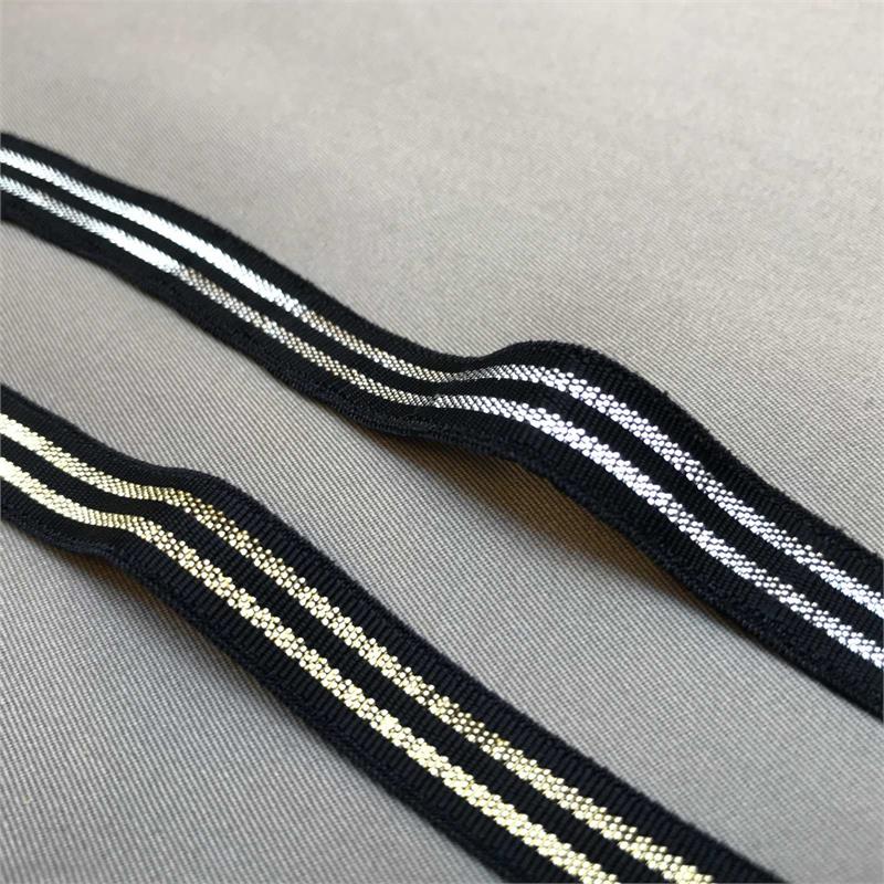 Nylon/Metallic Elasticated Braid. Width 11mm. This item is discontinued and available only while stocks last. Black/Gold only left in stock.