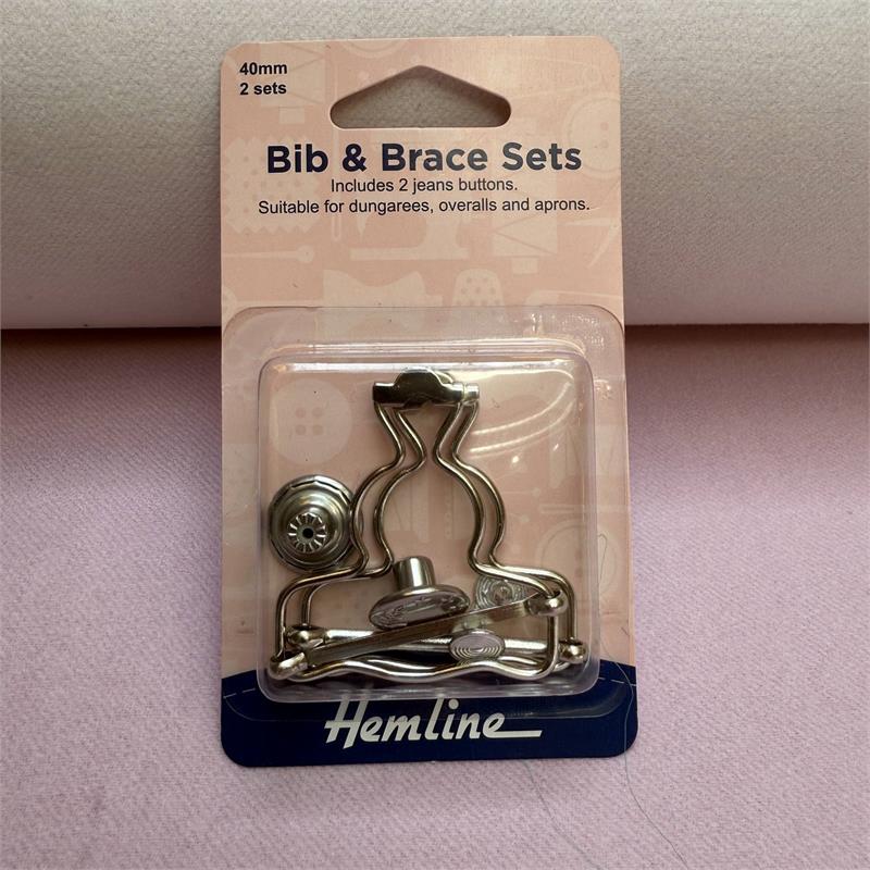 Hemline Bib & Brace Set Includes 2 x16mm buttons and 40mm clasps. Nickel only.