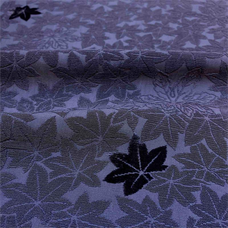 Momiji: autumn leaves, purple Japanese Wana velvet, handmade in Kyoto, piece dyed, pure silk. Each piece is handwoven over nylon weft threads over which silk loops are formed, these loops are then hand cut to form the exquisite velvet accents. The nylon wefts are then withdrawn to leave the finished cloth.Traditionally very narrow and used in men's Haori.