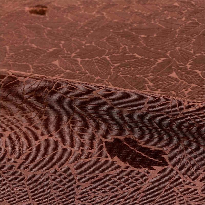 Ochiba design: fallen leaves in russet brown, Japanese Wana velvet, handmade in Kyoto, piece dyed, pure silk. Each piece is handwoven over nylon weft threads over which silk loops are formed, these loops are then hand cut to form the exquisite velvet accents. The nylon wefts are then withdrawn to leave the finished cloth. Traditionally very narrow and used for men's Haori.