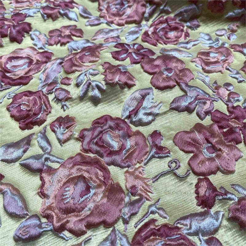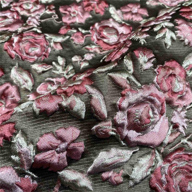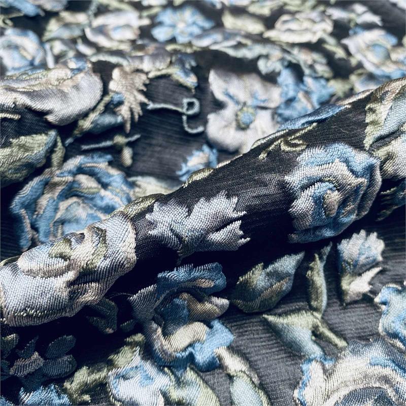 Italian floral cloqué. 67% polyester, 15% silk, 18% polyamide. 221g/lm