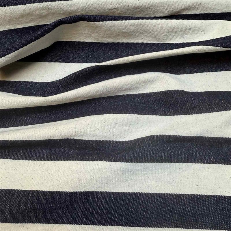 97% cotton 3% elastane warp striped cotton canvas, Italian. 352glm.
