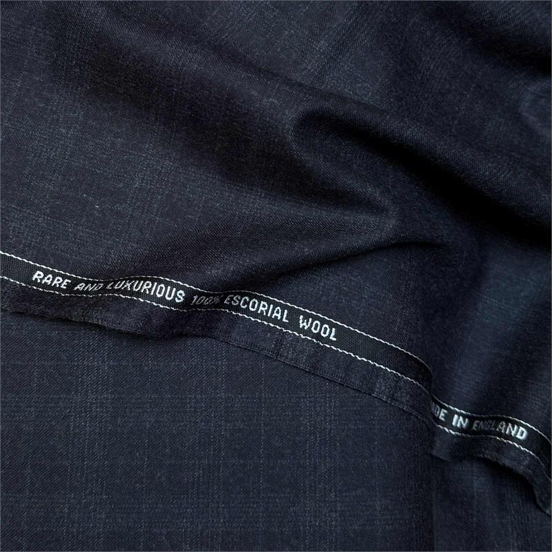 180gms 100% Escorial wool, UK made, named selvedge charcoal grey checked suiting.