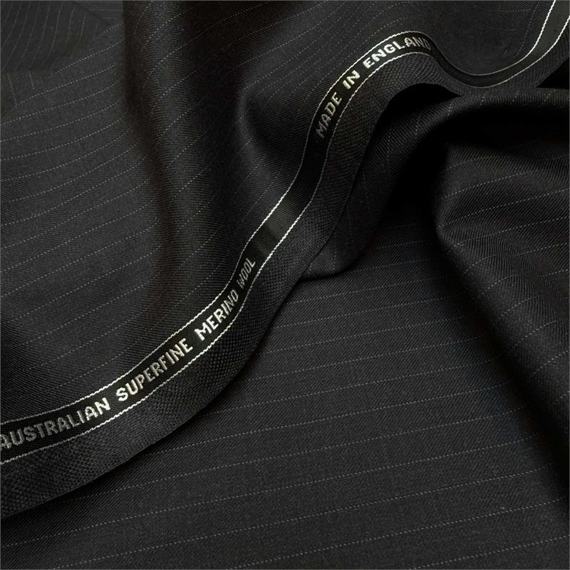 173gms 100% wool, UK made, named selvedge Super 130s charcoal grey pinstripe suiting.