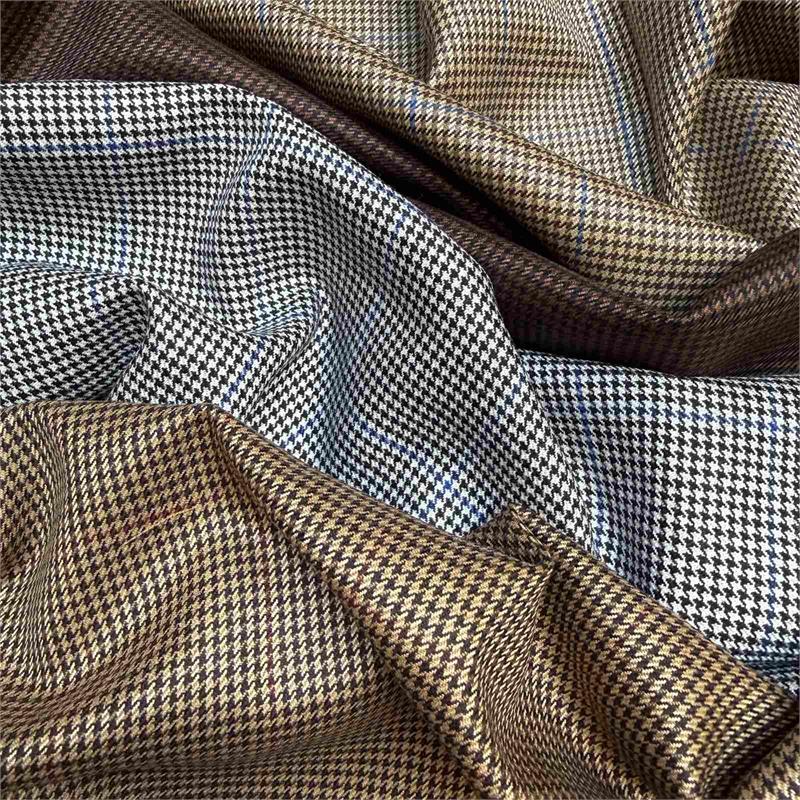 60% virgin wool 40% silk UK Super 120s luxury suiting. All colours apart from the brown have a large Prince of Wales che