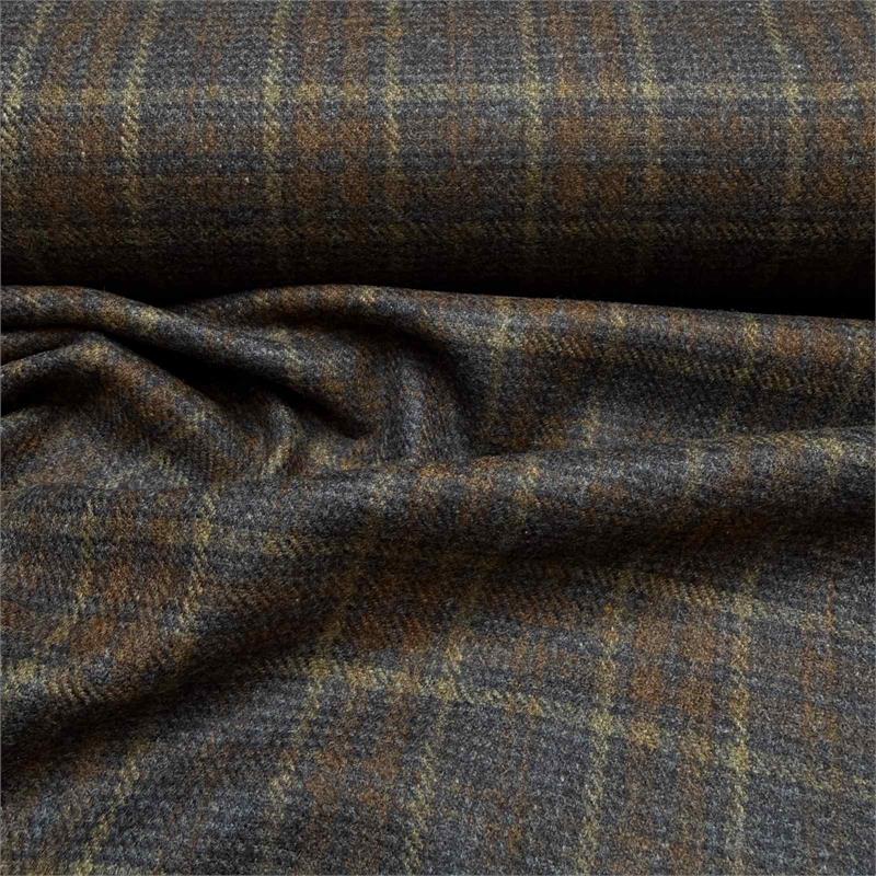90% virgin wool 10% cashmere flannel. Brown & orange check. Italian.