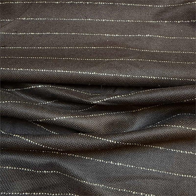 90% virgin wool 10% cashmere panama. Brown with ivory stripe. Italian.