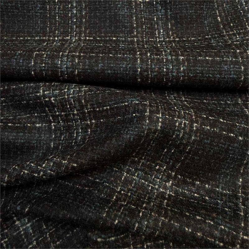 90% virgin wool 10% cashmere flannel. Black, turquoise, brown & ecru check. Italian.