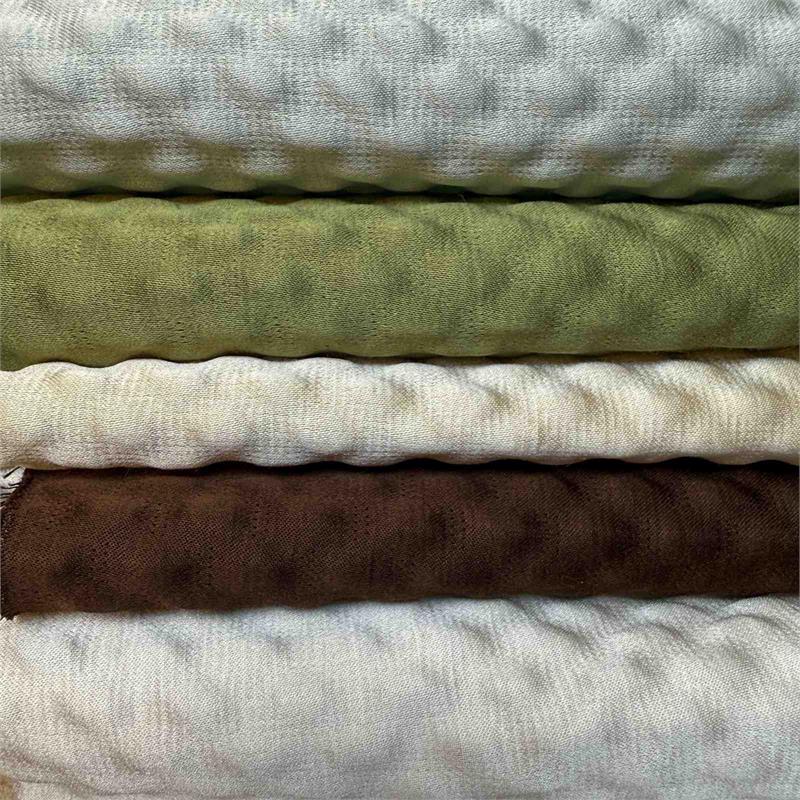 Bubble Cloque, 30% silk, 53% linen, 17% acrylic. Other colours available.