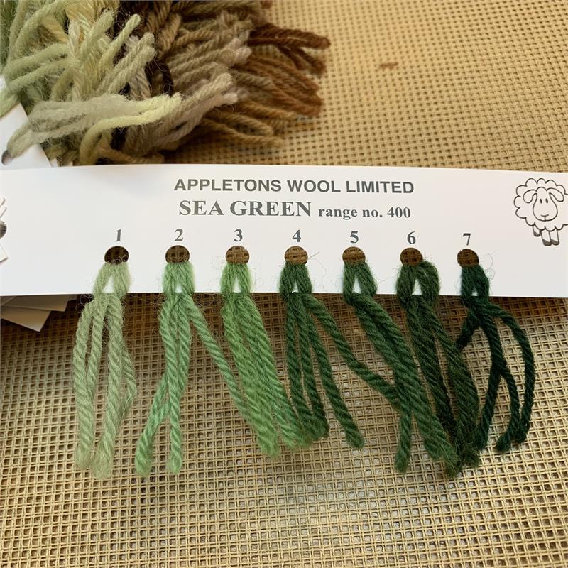 Appletons 4-ply Tapestry Wool Skein Sea Green - 10m. Spun and dyed in England using pure 100% British wool. It is hard wearing and long lasting.