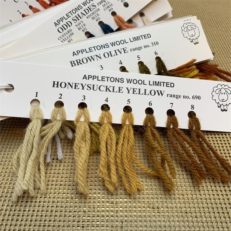 Appletons 4-ply Tapestry Wool Skein Honeysuckle Yellow - 10m. Spun and dyed in England using pure 100% British wool. It is hard wearing and long lasting. Colour 698 is discontinued and available only while stocks last.