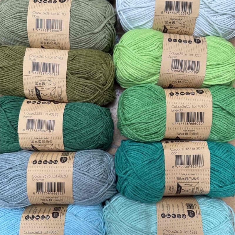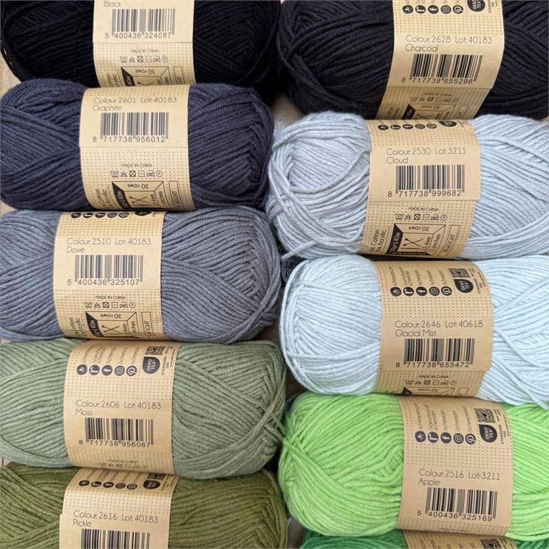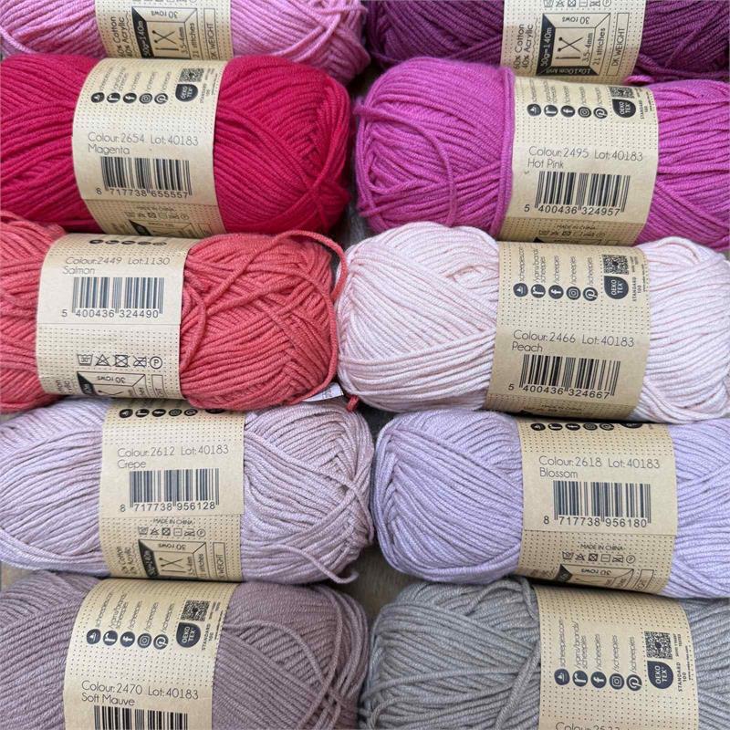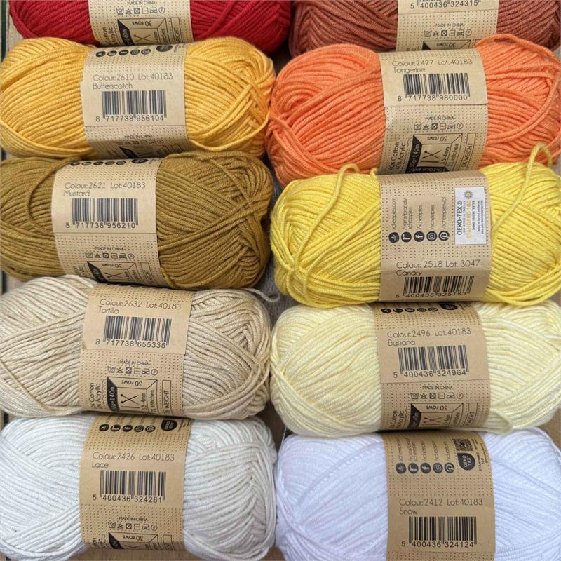 Softfun is a yarn designed for ease of use. Popular for knitting and crochet, it is a versatile DK weight and comes in a wide array of solid shades that provide options for colourwork. A blend of 60% cotton and 40% acrylic, Softfun can result in defined stitchwork and is machine washable at 30 degrees. With an 'easy start' tab to locate the inner strand of yarn, it is regularly chosen by both beginners and those more experienced.