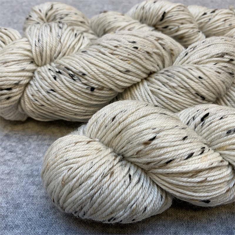 100g = 166m Undyed and ready for dyeing 85% superwash with 15% donegal nep Aran - 3-ply construction.