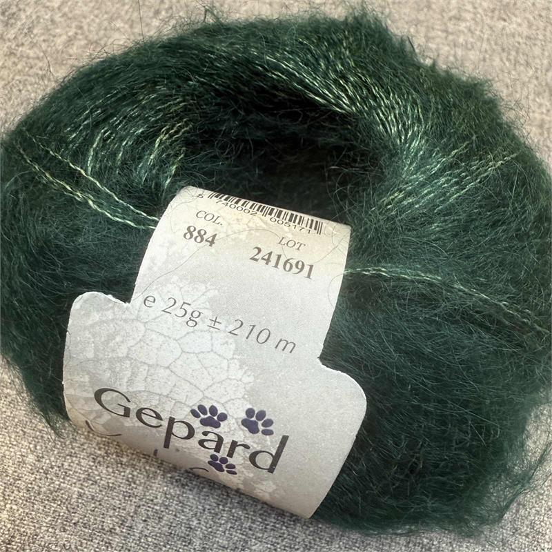 Gepard's Kid Seta is comprised of 70% kid mohair and 30% silk. It is regularly worked in with another yarn to produce a soft, fluffy finish. The wide colour range provides the option to either pick a Kid Seta that blends in with the accompanying yarn or to purposefully contrast with it for a more heathered effect. Kid Seta can also be used by itself (either single or double) to create delicate work that has a slight lustre and is luxurious in appearance.