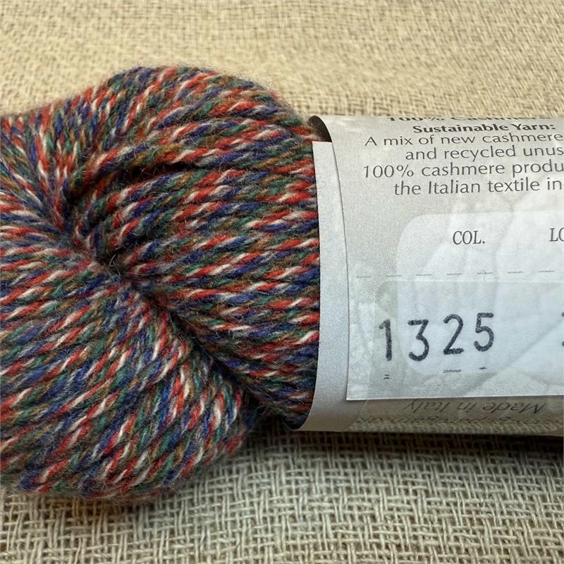 100% Cashmere made from a mixture of new fine long fibres and recycled cashmere which is new yarn that has been spun from unused knitted or woven products.