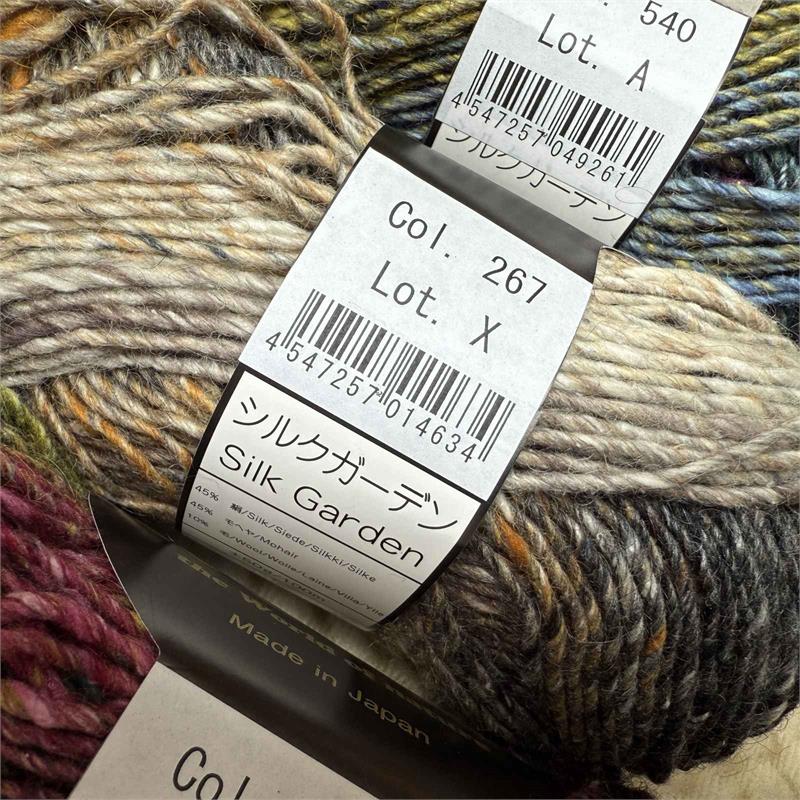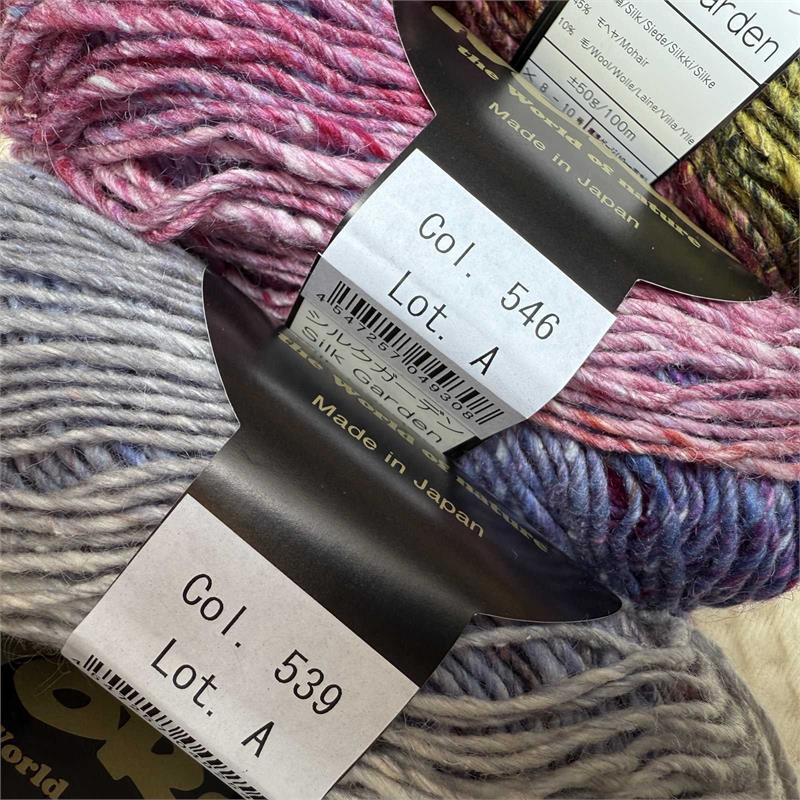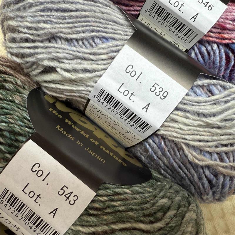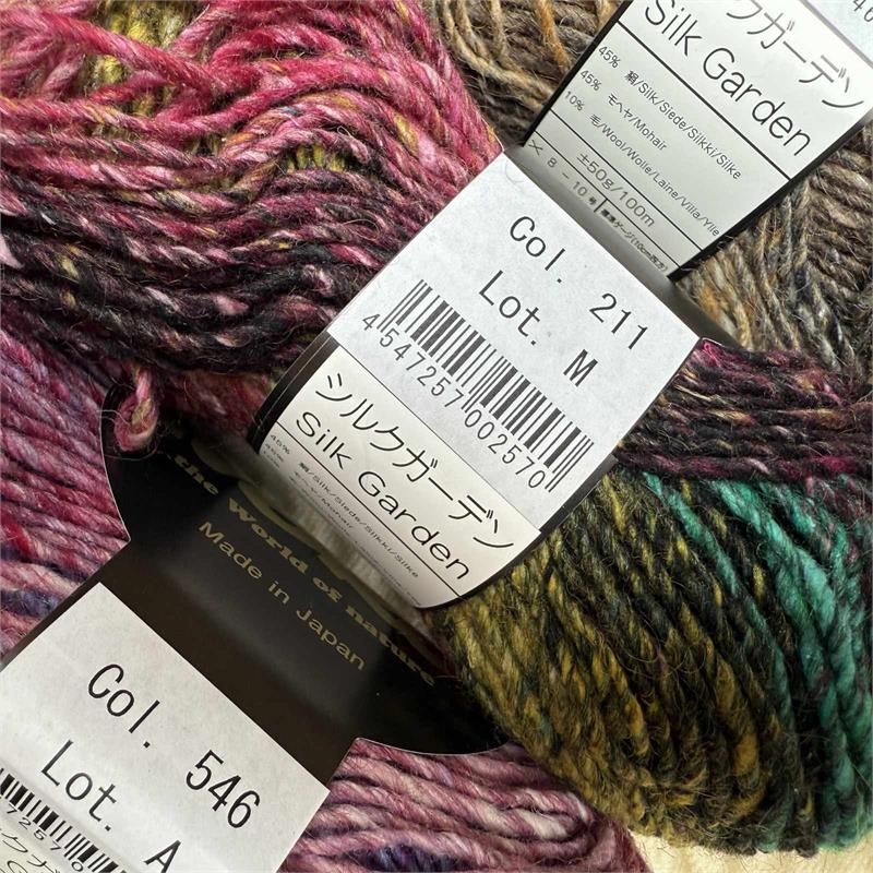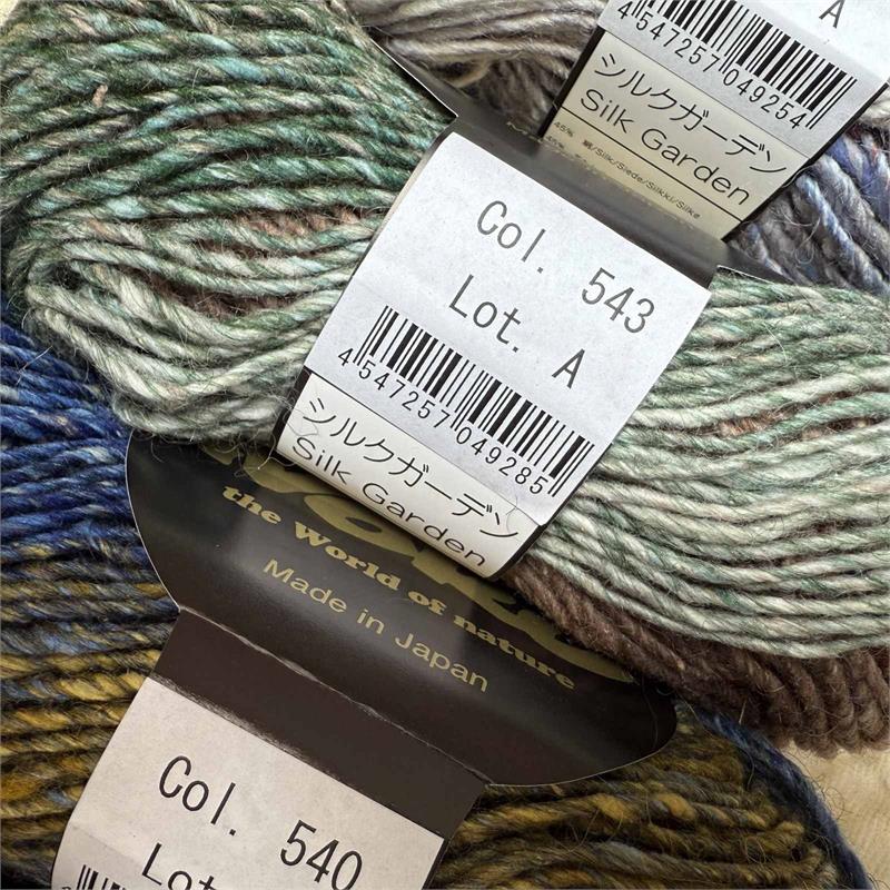 Noro Silk Garden - 50g - 100m 45% Silk, 45% Kid Mohair, 10% Wool. 4.5mm to 5mm needles. 10cm = 16 stitches x 20 rows.