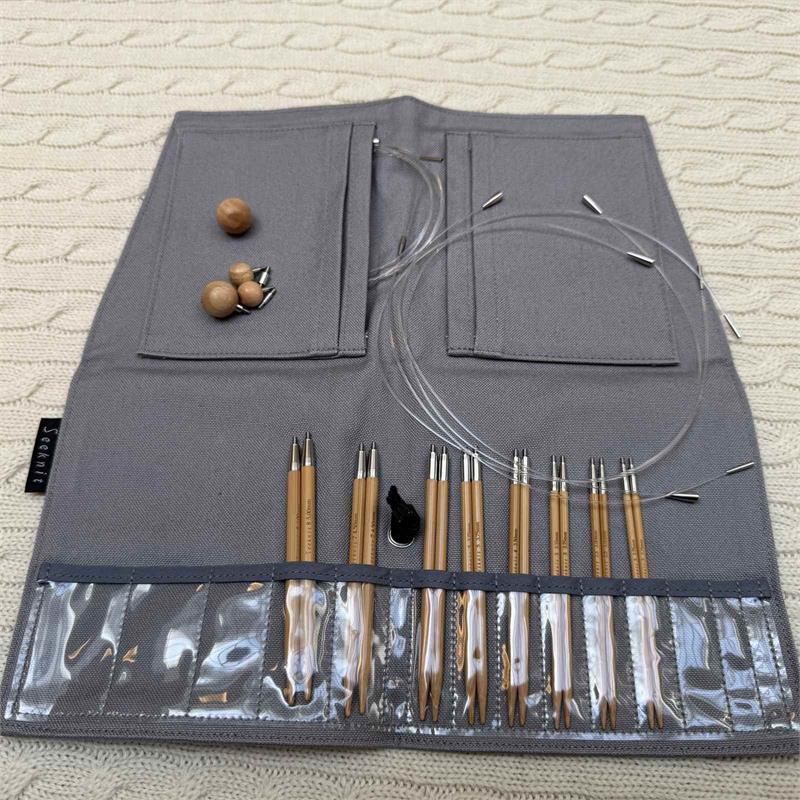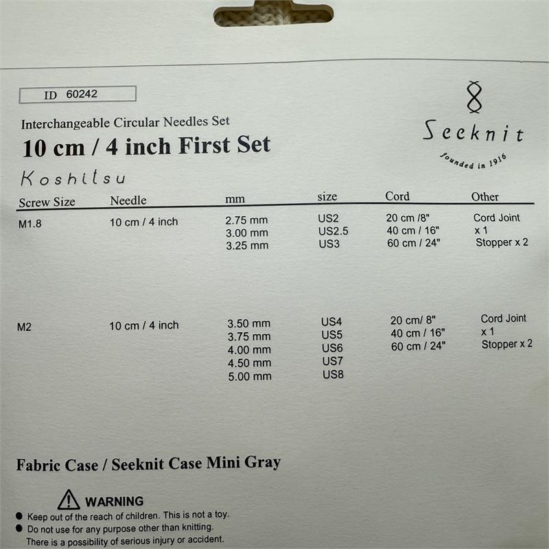 SeeKnit CURVE 10cm interchangeable needles set. 2.75mm to 5.00mm. New CURVE interchangeable needles developed for a more comfortable knitting experience. The connection between the bamboo needles and the stainless steel fitting is seamless and allows the yarn to glide more smoothly for a faster effortless knitting. Contains - 8 needles 2.75mm to 5.00mm 6 Cords - M1.8 20cm, 40cm, 60cm and M2 20cm, 40cm, 60cm M1.8 and M2 Stoppers M1.8 and M2 Cord Joint