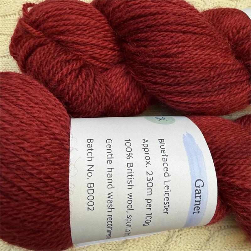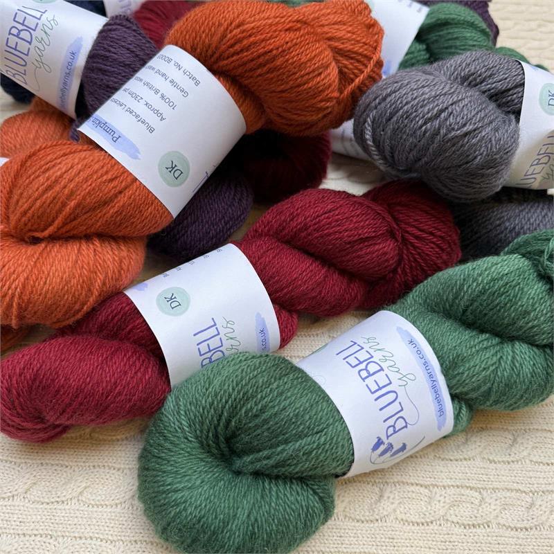 Bluebell Blue faced Leicester DK - 100g = 230m Hand Dyed 100% British Wool. Needles size 3.75mm-4.5mm. Gentle Hand Wash - cool. 10cm = 31 stitches x 42 rows. Hand dyed yarns - batches will vary.