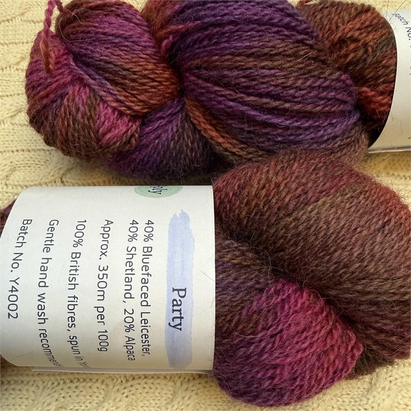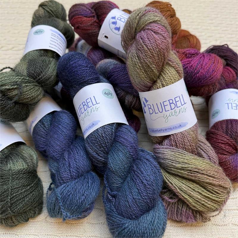 Bluebell Blue Faced Leicester, Shetland, Alpaca 4-ply - 100g = 350m Hand Dyed in Dorset 100% British Yarn - 40% BFL/40% Shetland/20% Alpaca. Needles size 325mm-3.75mm. Gentle Hand Wash - cool. Hand dyed yarns - batches will vary.