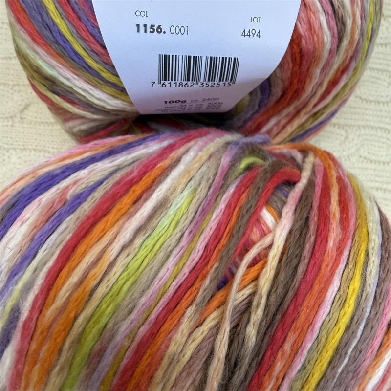 100g = 240m 100% Cotton. Needle size 4.5mm-5mm. Machine was at 30 degrees delicate. 10cm = 18 stitches x 25 rows.