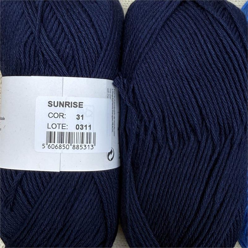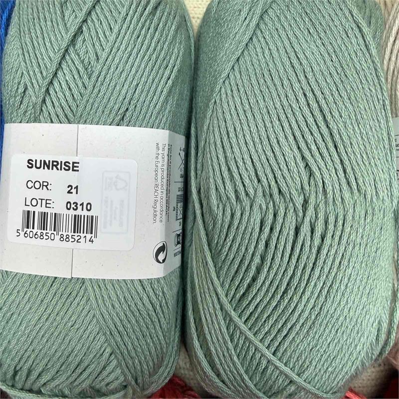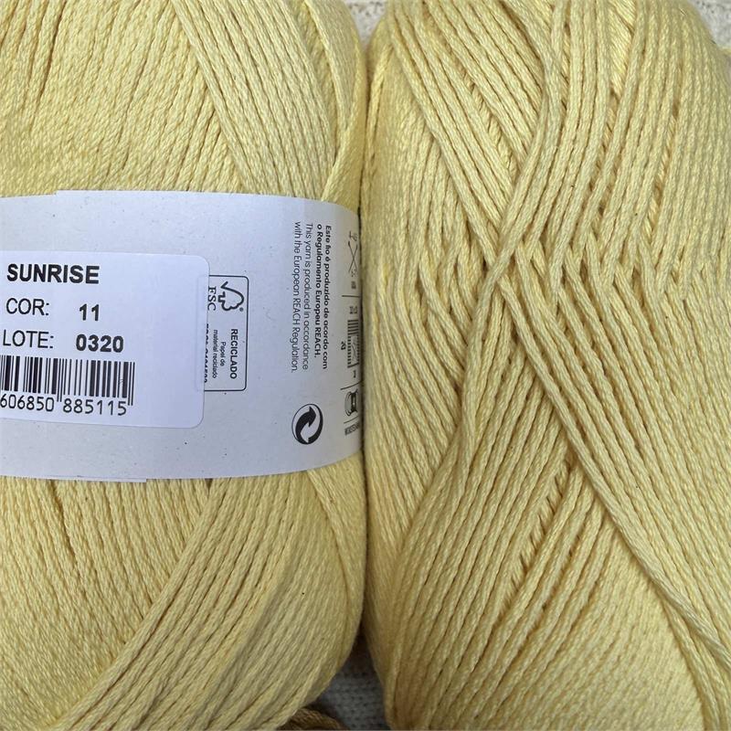 100g = 150m 100% Organic Cotton. Suitable to machine wash delicate 30 degrees. Needles 4mm-4.5mm. 10cm = 18 stitches x 26 rows.