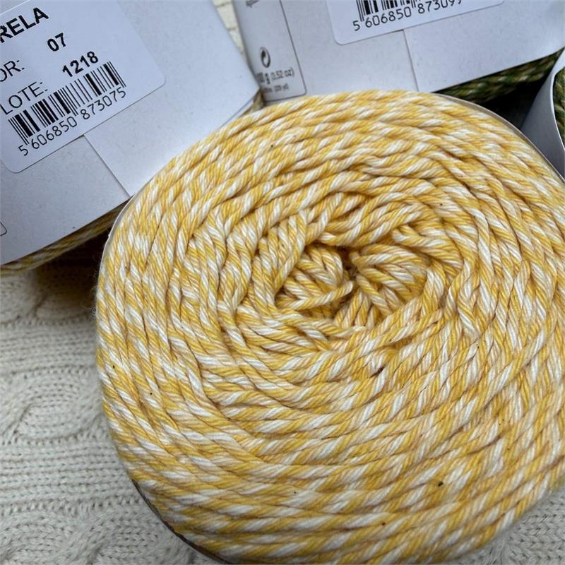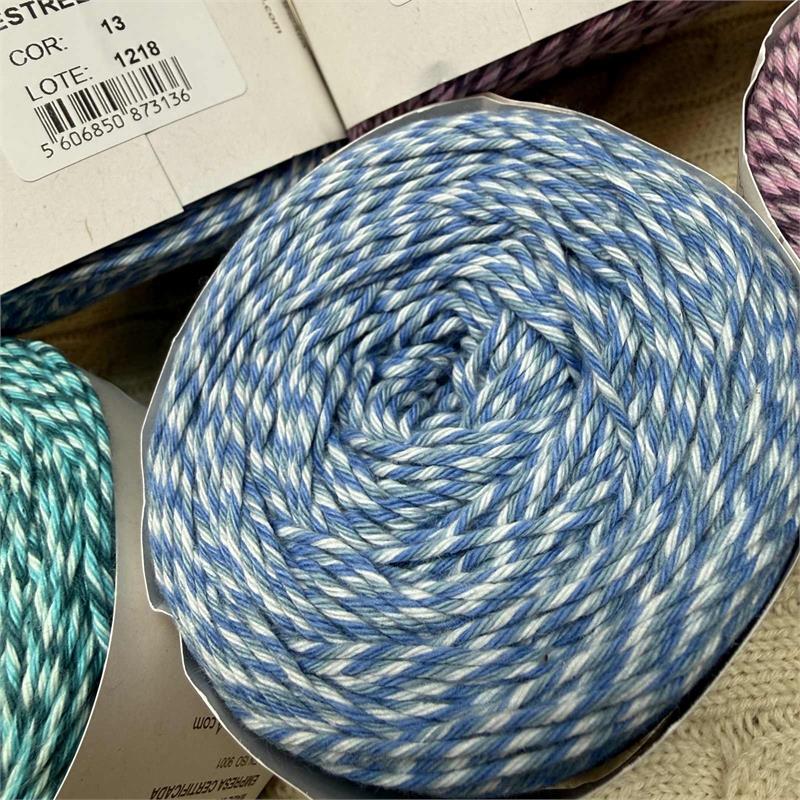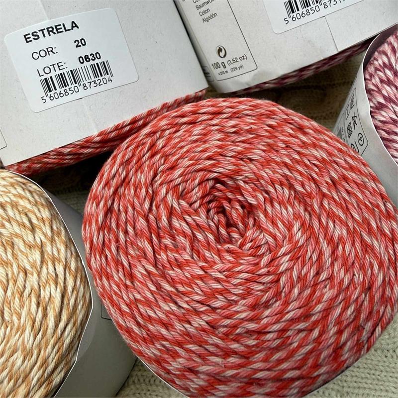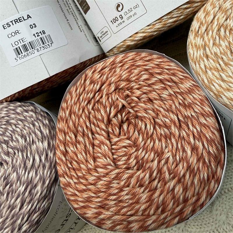 100g = 210m 100% Cotton. Suitable to machine wash delicate 30 degrees. Needles 3mm-4mm. 10cm = 21 stitches x 33 rows.