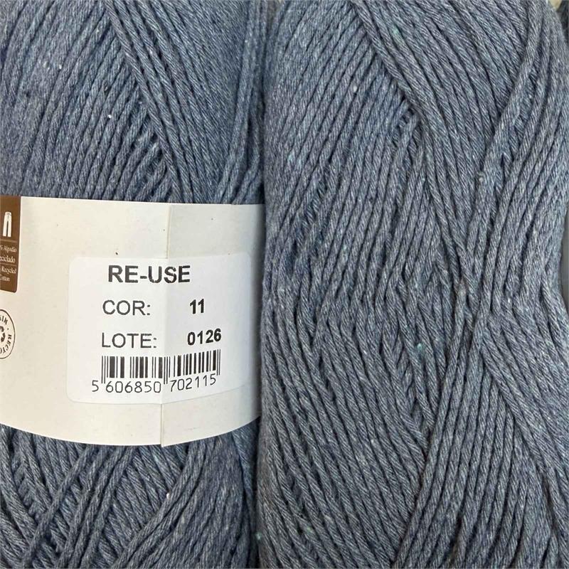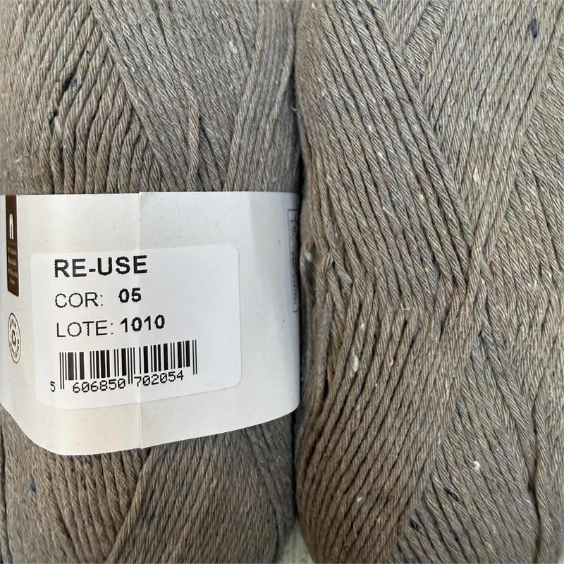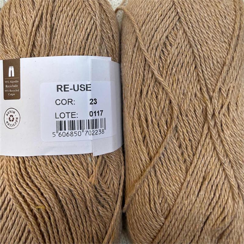 100g = 192m 95% Recycled Cotton/5% Other Fibres. Hand wash. Needles 4.5mm-5mm. 10cm = 21 stitches x 29 rows.