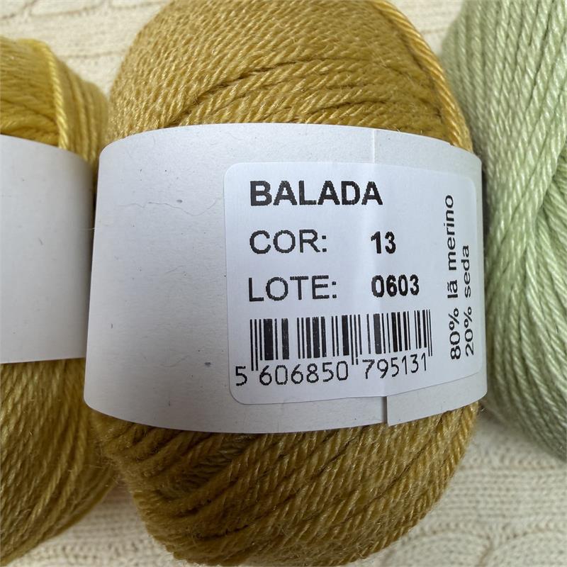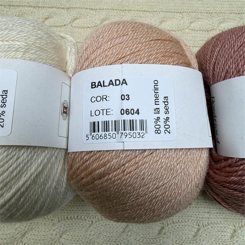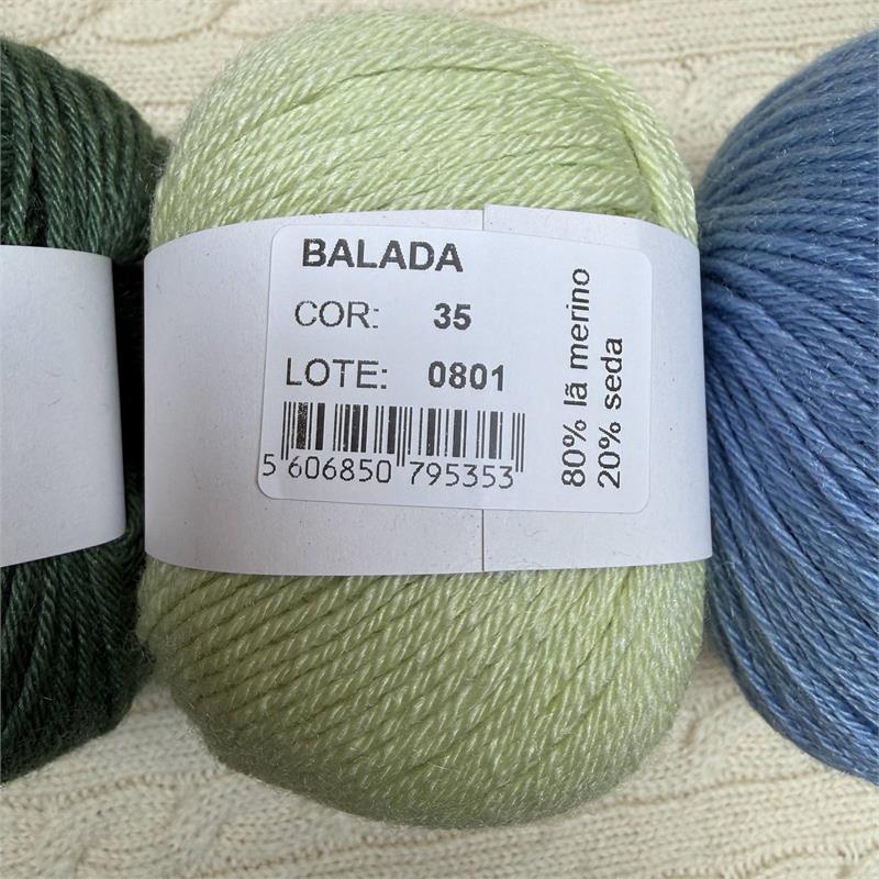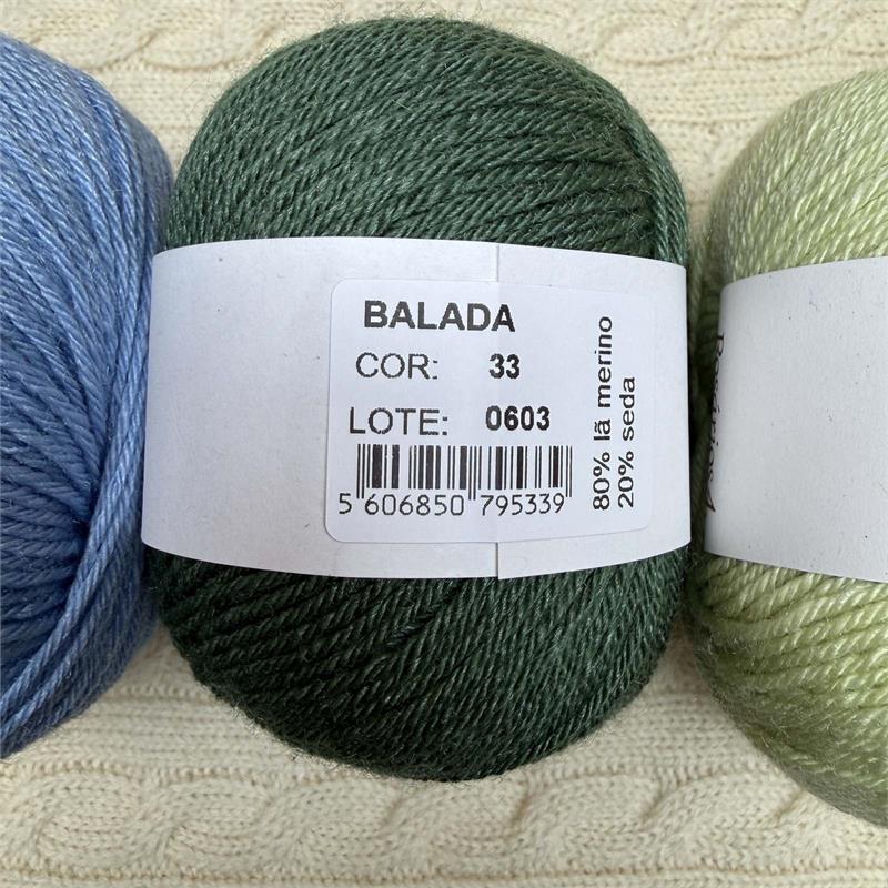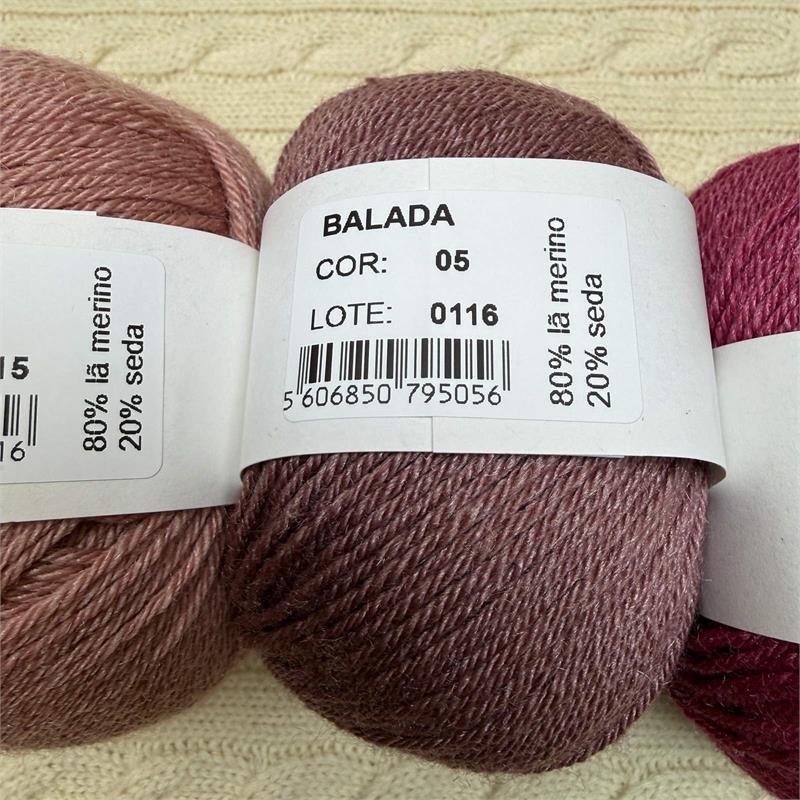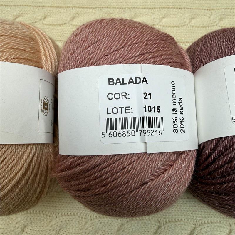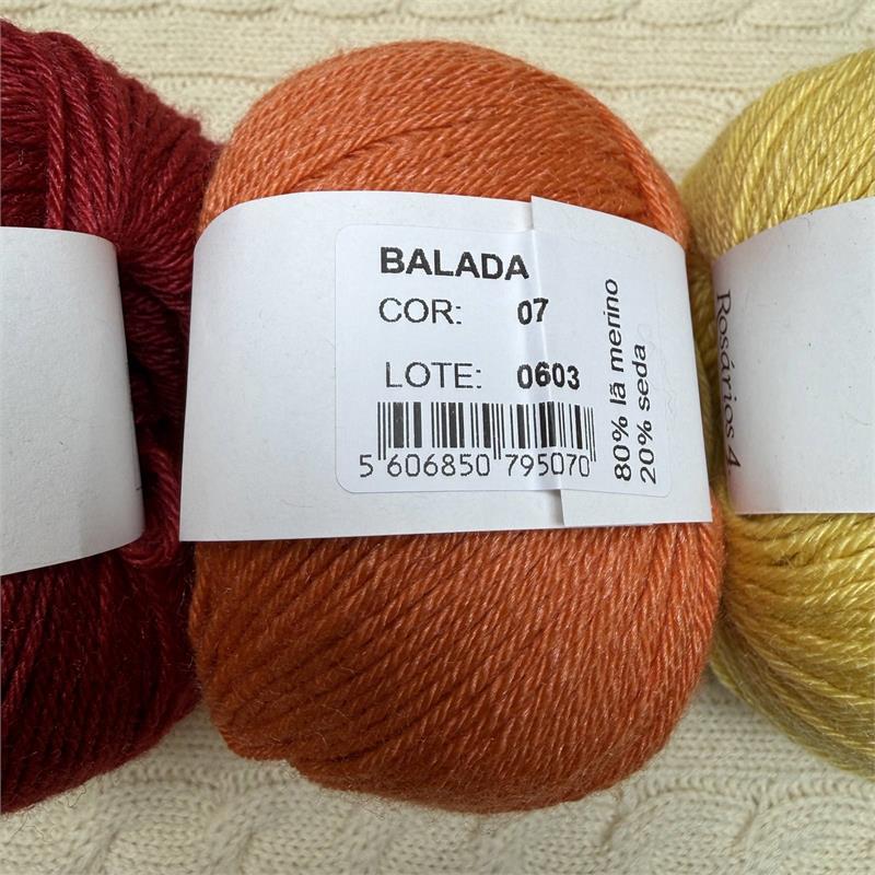 50g = 140m 80% Merino/20% Silk. Hand wash. Needles 3mm-3.5mm. 10cm = 21 stitches x 31 rows.