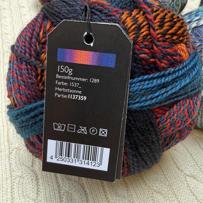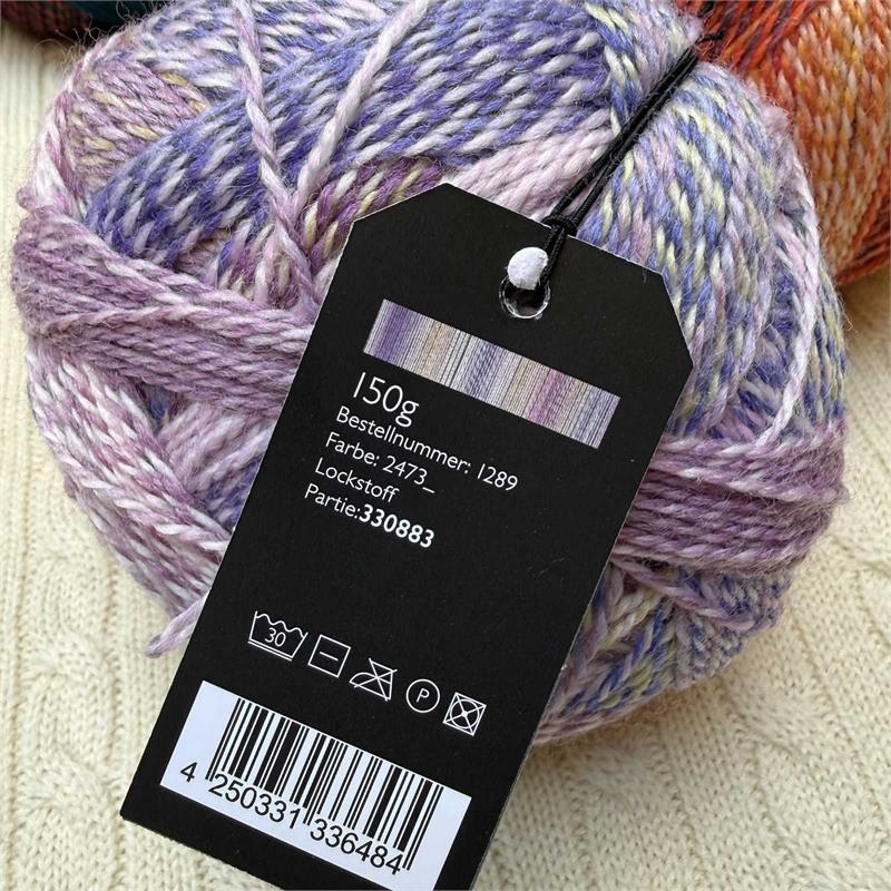 150g = 400m 75% New Wool/25% Nylon. Needles size 3mm-4mm. machine washable at 40 degrees. 10cm = 22 stitches x 30 rows.