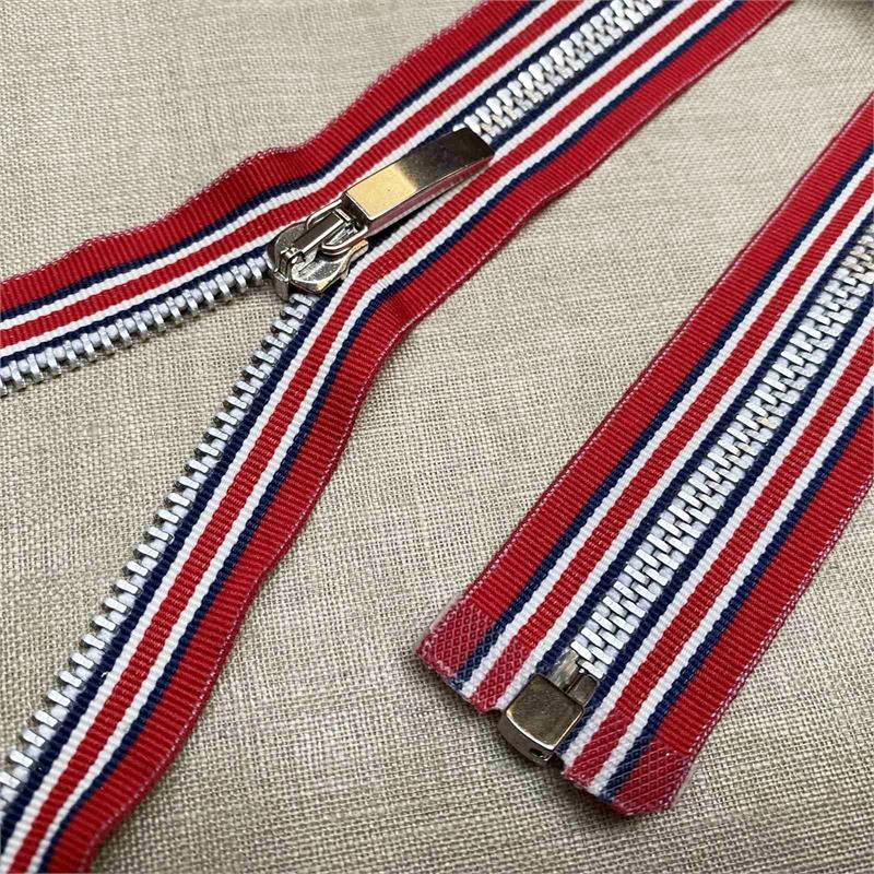 T5 Lampo Red Multi Stripe Tape Open End Zip with Aluminium Teeth. Polyester. Length 41cm.