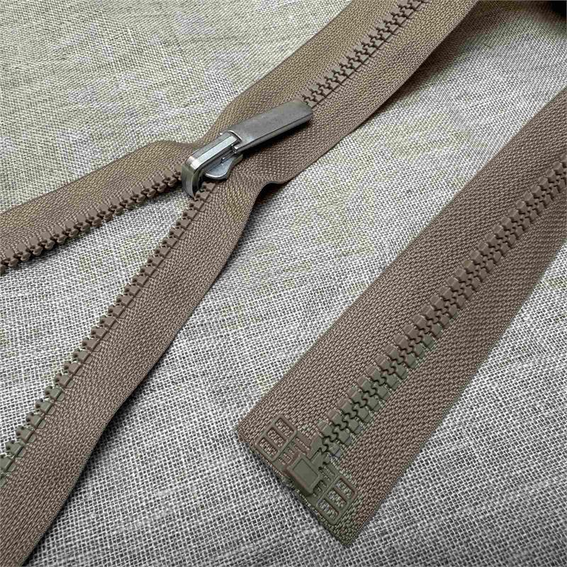Lampo #6 Plastic Injected Teeth O/E Zip with GRS Recycled Polyester Tape with Reversible Slider in Matt Silver Tapes are made from 100% Polyester Yarns recycled with a mechanical process where the PET bottles are selected, shredded and transformed into a new polymer without the addition of chemical additives. This process made in Italy, saves 60% of energy consumption and 32% of CO2 emissions and 94% of water consumption.Teeth Eco Brass (Nickel Free)