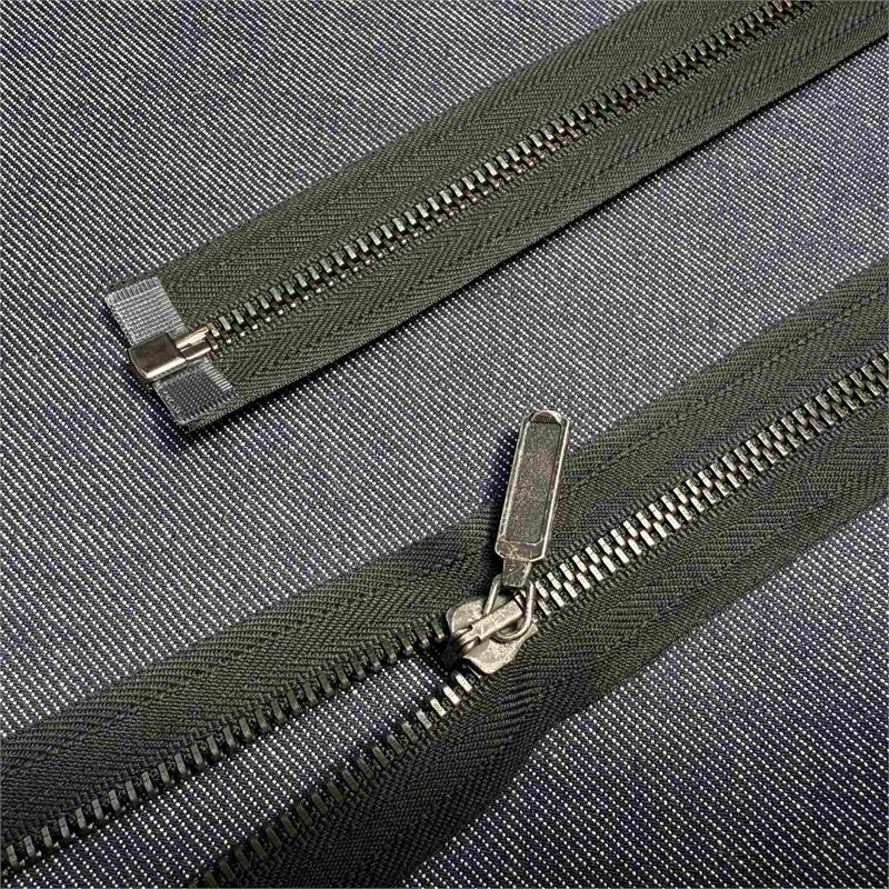 Lampo #5 Old Silver V3R Open End Zip with with GRS Recycled Polyester Tape Tapes are made from 100% Polyester Yarns recycled with a mechanical process where the PET bottles are selected, shredded and transformed into a new polymer without the addition of chemical additives. This process made in Italy, saves 60% of energy consumption and 32% of CO2 emissions and 94% of water consumption.Teeth Eco Brass (Nickel Free)