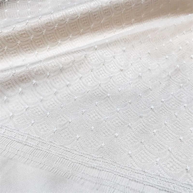 Very fine French chantilly lace with an allover wave design. Wave measures 2.5cm across. 75% nylon, 25% cotton.