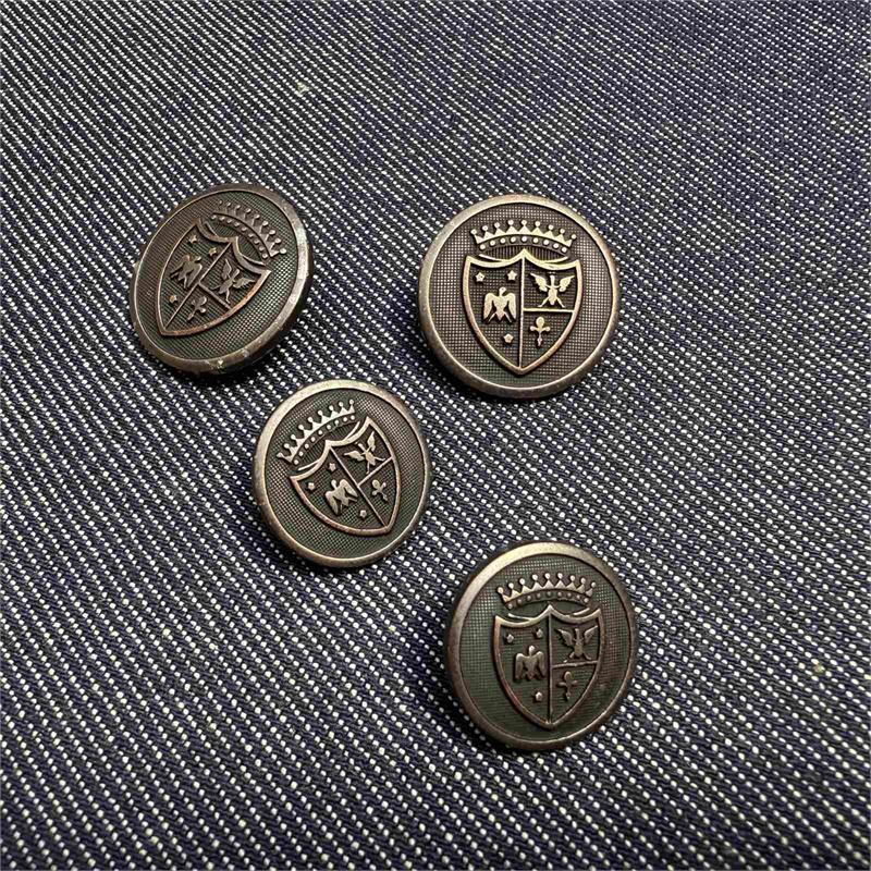 Portuguese Metal Shank Shield Button. Sz28 = 18mm and Sz36 = 23mm.