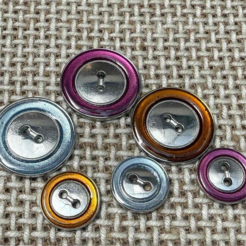 Italian 2-Hole Silver Metal Button. Sz24 = 15mm and Sz36 = 23mm. Limited stock only.