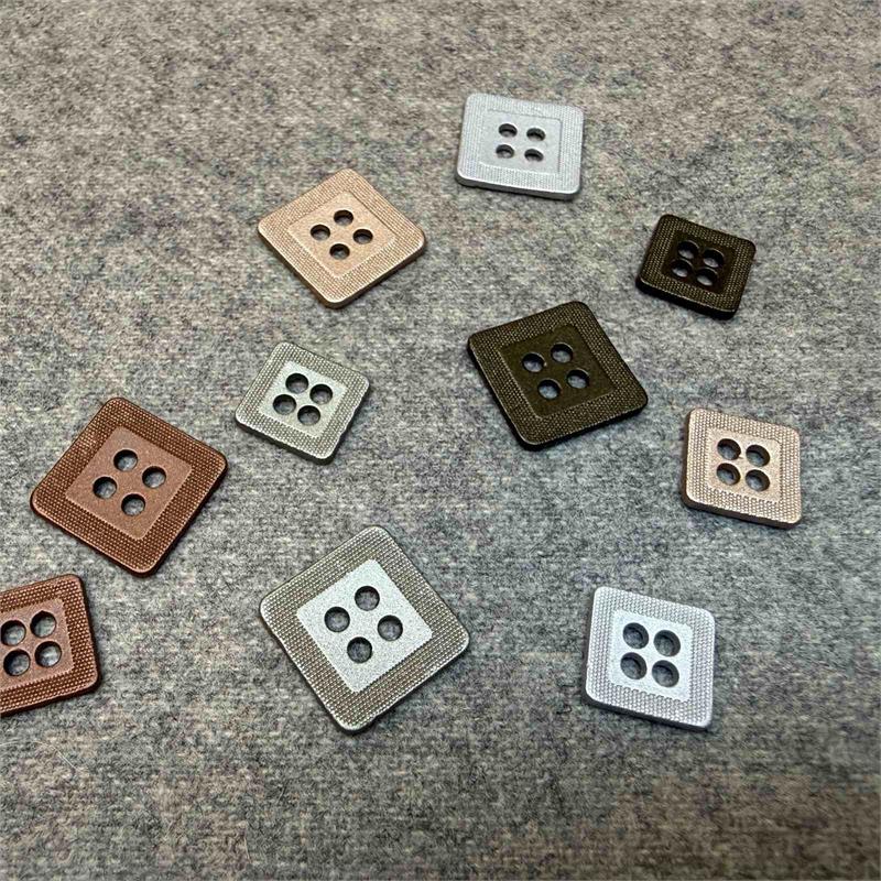 Italian Square Metal 4-Hole Buttons. Sz24 = 15mm and Sz32 = 20mm. Limited stock only.