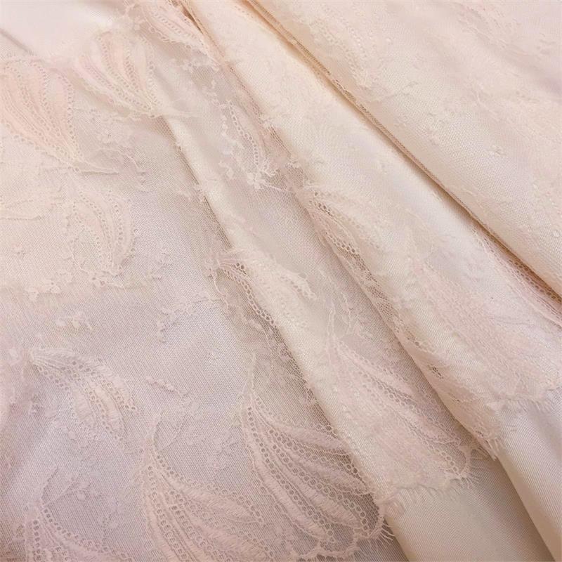 30cm wide blush pink Italian chantilly lace. Scalloped both edges.