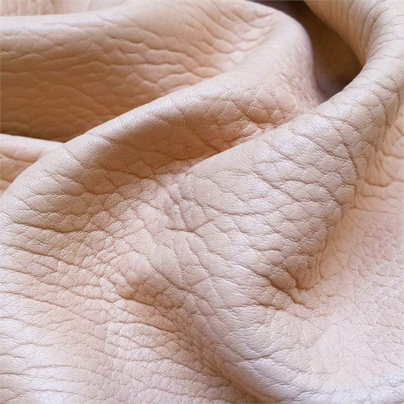 Shrunken lambskin, c. 8 sq ft, gold is slightly smaller. These skins are thicker than the regular nappa and very soft, they have been boiled to achieve this effect which gives the impression of an enlarged grain. Think elephant knees! The gold has a foil printed finish. If you're making a bag we recommend 4221 as an interlining which is stiff yet flexible with a low-melt glue.